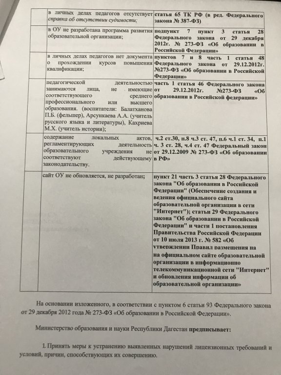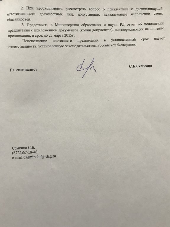 Предписания органов, осуществляющих государственный контроль (надзор) в сфере образования, отчеты об исполнении таких предписаний (при наличии)